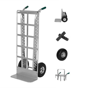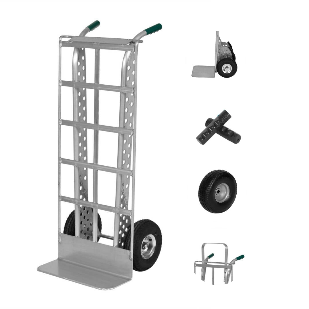 Inclus : deux roues anti-crevaisons, une palette de 12″, des poignées renforcées et une extension de diable